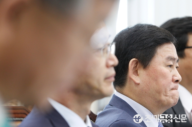 (조세금융신문=전한성 기자) 기획재정부·한국은행·한국수출입은행·한국조폐공사·한국투자공사·국제원산지정보원에 대한 국회 기획재정위원회의 종합감사가 5일 서울 여의도 국회에서 열린 가운데 최경환 경제부총리 겸 기획재정부 장관이 안홍철 한국투자공사장의 거취 관련 질의가 쏟아지자 입술을 깨물고 있다.