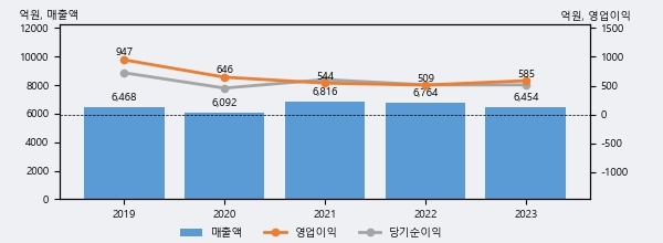 신대양제지의 2023년 매출액은 전년대비 -4.6% 줄어든 6454억원이고, 영업이익은 전년대비 15.0% 늘어난 585억원을 기록했다. 이 회사의 매출액 증감률과 영업이익 증감률은 각각 코스피 하위 38%, 상위 41%에 해당된다.