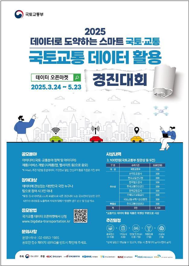 (조세금융신문=구재회 기자) 국토교통부는 내일(24일)부터 5월 23일까지 '2025 국토·교통 데이터 활용 경진대회'를 개최한다고 23일 밝혔다.