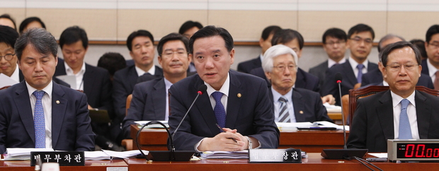 (조세금융신문=전한성 기자) 법무부·법제처·감사원·대법원·군사법원에 대한 국회 법제사법위원회의 종합감사가 8일 서울 여의도 국회에서 열린 가운데 김현웅 법무부 장관이 의원들의 질의에 답변하고 있다.