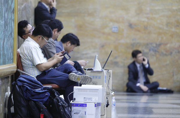 (조세금융신문=전한성 기자) 19대 국회 국정감사 마지막날인 8일 오후 서울 여의도 국회 본관 복도에 피감기관 관계자들이 휴식을 취하고 있다.