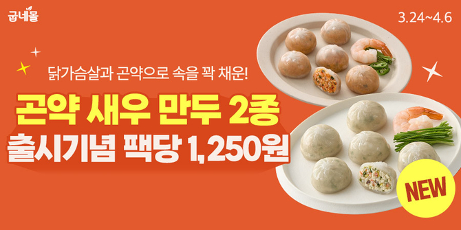 (조세금융신문=민경종 전문기자) 건강한 닭가슴살&간편식 전문몰을 지향하는 굽네몰(대표 정수철)이 ‘닭가슴살 곤약 새우 만두’ 2종(오리지널, 청양고추)을 출시하고 자사몰 단독 최저가 프로모션을 오는 4월 6일까지 진행한다.