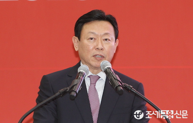 (조세금융신문=전한성 기자) 신동빈 롯데그룹회장이 12일 오전 인천 중구 운서동 롯데면세점 통합물류센터에서 열린 롯데면세점 비전 선포식에서 발표를 하고 있다.