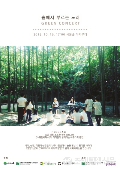 이번 콘서트는 인디밴드 ‘스웨덴세탁소’, 그린리더 프로그램 참여 어르신 및 아동들, BNP파리바 카디프생명 임직원 자원봉사자들과 (사)생명의숲국민운동 관계자, 서울숲 방문객들의 참여로 진행된다.