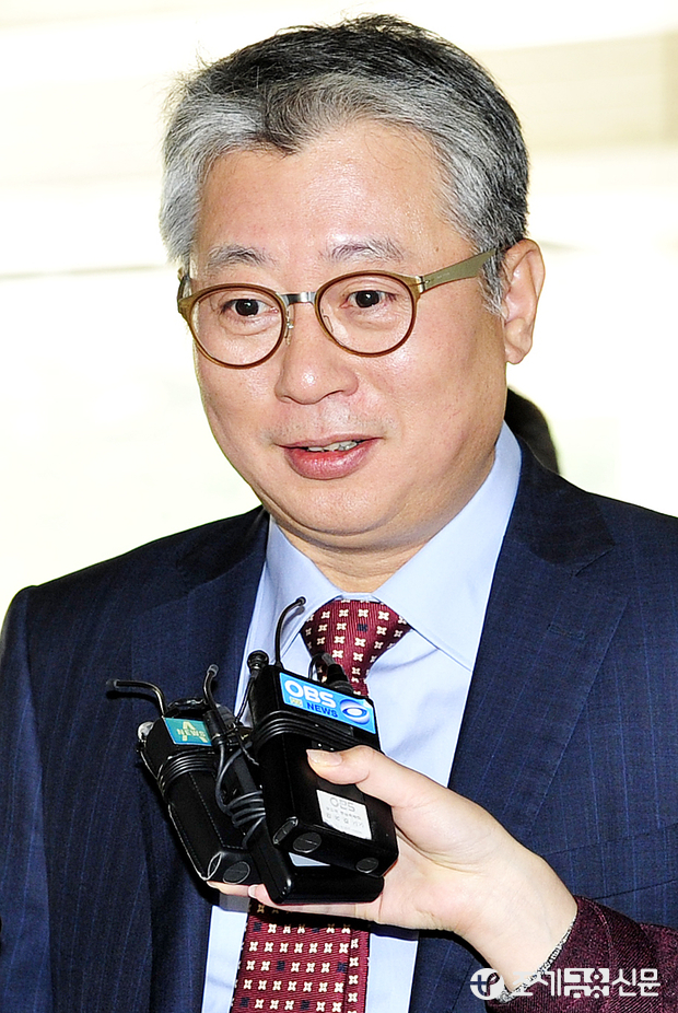 (조세금융신문=전한성 기자) 15일 오후, 청와대 문건 유출 사건으로 기소된 조응천 전 청와대 공직기강 비서관이 서울 서초구 중앙지방법원에서 열린 선거공판에 참석하기 전 취재진의 질문에 답변하고 있다.