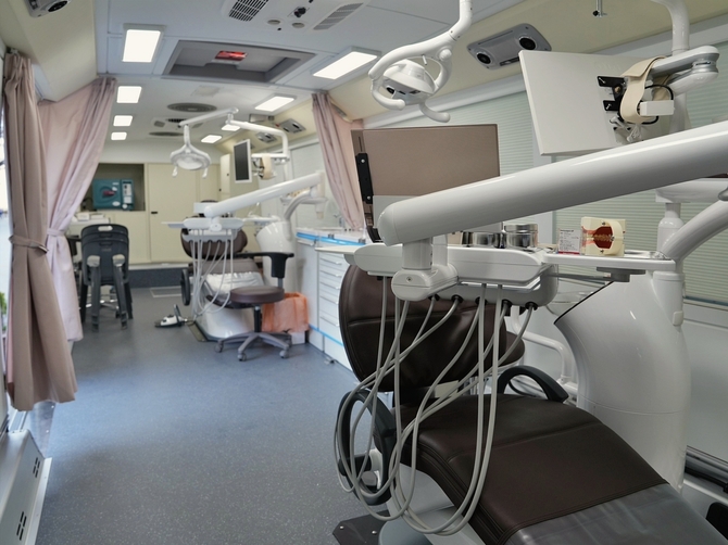 이번에 새롭게 선보인 ‘업그레이드 닥터자일리톨 버스’는 약 3개월간의 내부 개조를 거쳐 현장에서 보철기공을 제외한 대부분의 치과 진료가 가능한 최신형 유닛 체어 2대를 장착했다. 장애인 진료를 위한 휠체어 전동 리프트와 진료 장비에 필요한 전력 공급용 발전기, 진동 방지와 차량 수평을 유지하는 레벡잭 등 특수 장비도 갖췄다.