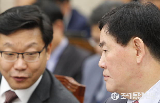 (조세금융신문=전한성 기자) 국회 기획재정위원회의 전체회의가 20일 오전 서울 여의도 국회에서 열린 가운데 최경환 경제부총리 겸 기획재정부 장관과 주형환 기획재정부 제1차관이 귀엣말을 나누고 있다.