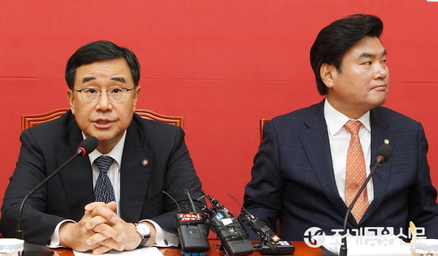(조세금융신문=전한성 기자) 새누리당 김정훈 정책위의장이 21일 오전 서울 여의도 국회 원내대표실에서 열린 취임 100일 기자간담회에서 그간의 소회와 향후 포부를 밝히고 있다.