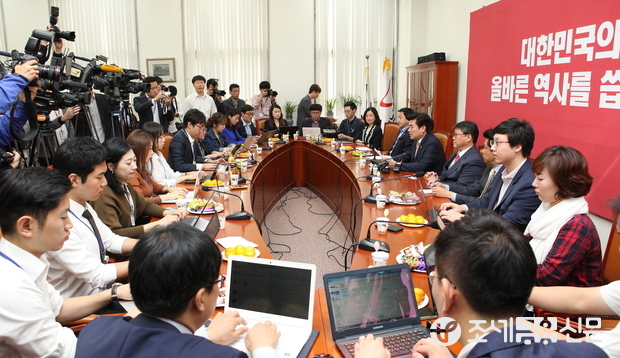 (조세금융신문=전한성 기자) 새누리당 원유철 원내대표가 21일 오전 서울 여의도 국회 원내대표실에서 열린 취임 100일 기자간담회에서 그간의 소회와 향후 포부를 밝히고 있다.