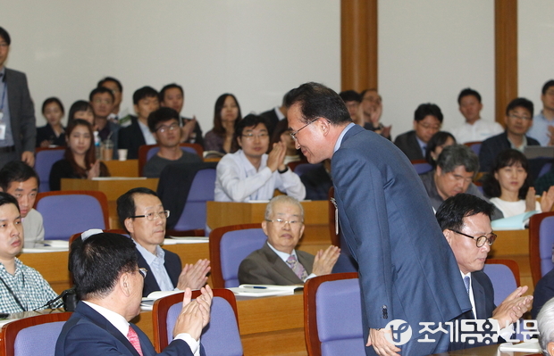 (조세금융신문=전한성 기자) 국회경제정책포럼과 정희수 국회 기획재정위원장이 공동 주최하는 '한국 사회 어디로 가는가? 4대 양극화와 정책대안 - 소득 양극화:소득불평등과 균형성장'이 21일 오후 서울 여의도 국회 의원회관에서 열린 가운데 백운찬 한국세무사회장이 참석해 내빈께 인사를 하고 있다.