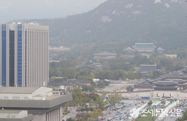 (조세금융신문=전한성 기자) 전국 대부분의 지역에서 미세먼지 농도가 '나쁨'으로 관측된 22일 오전 서울 중구 세종대로 프레스센터에서 본 서울이 하늘이 뿌옇게 보이고 있다.
