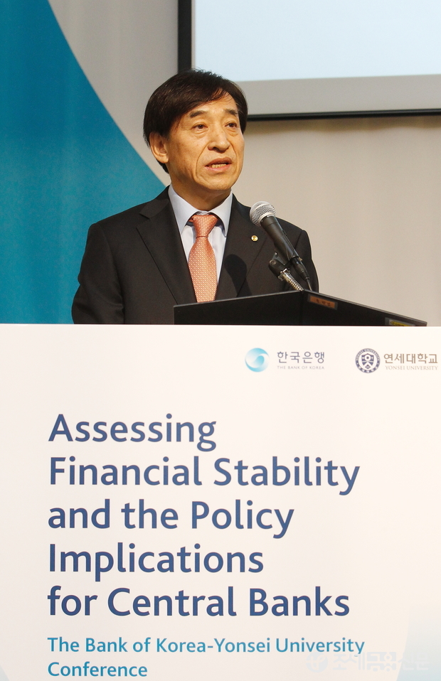 (조세금융신문=전한성 기자) 한국은행 조사국과 연세대학교가 함께 ‘금융안정 평가와 중앙은행에 대한 정책 시사점’을 주제로 한 컨퍼런스를 23일 서울 서대문구 연세대학교 백양누리 그랜드블룸과 대우관에서 개최한 가운데 이주열 한국은행 총재가 개회사를 하고 있다.