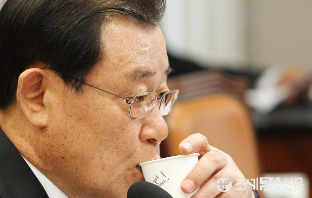 (조세금융신문=전한성 기자) 대통령비서실 등에 대한 국회 운영위원회의 국정감사가 23일 서울 여의도 국회에서 열린 가운데 이병기 비서실장이 목을 축이고 있다.