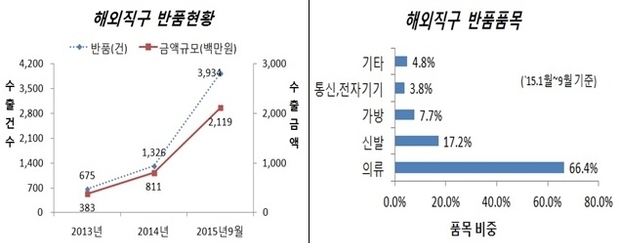 주요 반품 대상은 의류 57.9%, 신발 16.2%, 가방 9.5% 등이었으며, 반품사유는 상품 하자를 비롯해 인터넷 화면으로 보고 구매한 물품의 색상, 사이즈 등이 구매자 기대에 못 미치는 경우도 많았다.