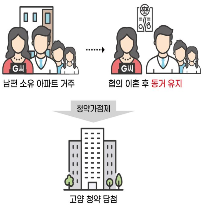 G씨는 남편 명의 아파트에 거주하면서도 협의 이혼을 통해 무주택자로 위장, 무주택 기간 점수를 확보해 총 9회 청약한 끝에 고양시 아파트에 당첨됐다. 건강보험 기록과 동거 사실 등이 확인되면서 청약 부정행위가 드러났다.