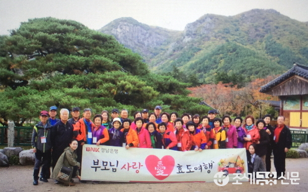 (조세금융신문=김사선 기자) BNK금융그룹 경남은행은 직원 애사심과 자긍심 고취를 위해 27일 하루 동안 ‘직원 부모 효도여행’을 실시했다.