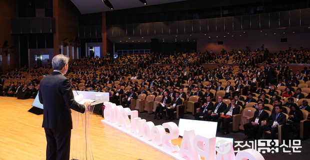 (조세금융신문=전한성 기자) 'CAPA SEOUL 2015 개회식'이 28일 오전 서울 강남구 삼성동 코엑스에서 열린 가운데 임종룡 금융위원장이 축사를 하고 있다.