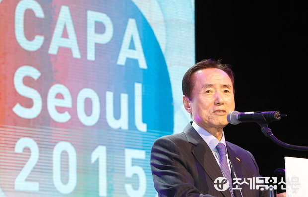 (조세금융신문=전한성 기자) 'CAPA SEOUL 2015 갈라디너'가 28일 오후 서울 강남구 삼성동 그랜드인터컨티넨탈호텔에서 열린 가운데 강성원 한국공인회계사회장이 환영사를 하고 있다.