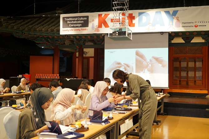 이날 행사에서는 국가무형유산인 ‘매듭장’ 박형민 이수자가 한국 전통공예 기술인 매듭장을 시연했다. 이어서 유학생들이 직접 매듭 팔찌와 키링을 만들며 한국 전통공예를 체험했다. 농심은 참가자들에게 할랄 인증을 받은 농심 제품들로 구성된 선물세트를 증정했다.