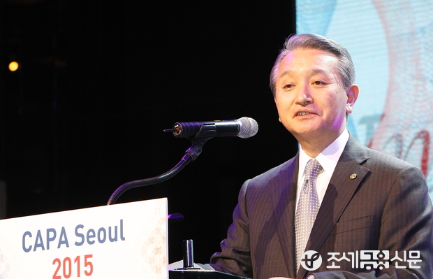 (조세금융신문=전한성 기자) 'CAPA SEOUL 2015 갈라디너'가 28일 오후 서울 강남구 삼성동 그랜드인터컨티넨탈호텔에서 열린 가운데 키미타카 모리 일본공인회계사회장이 건배사를 하고 있다.