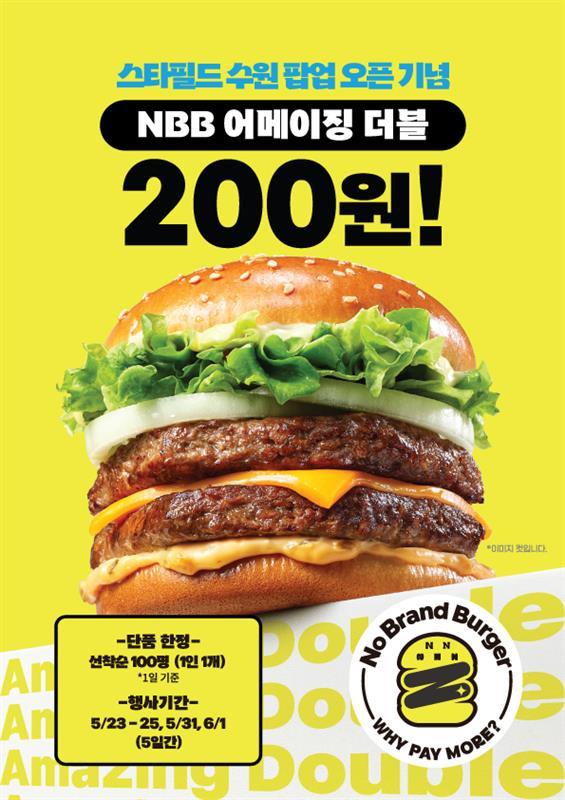 오는 23일부터 25일까지, 그리고 31일부터 6월 1일까지 총 5일간 매일 선착순 100명에게 신메뉴 ‘NBB 어메이징 더블’을 200원에 판매하는 특별 프로모션을 진행한다.