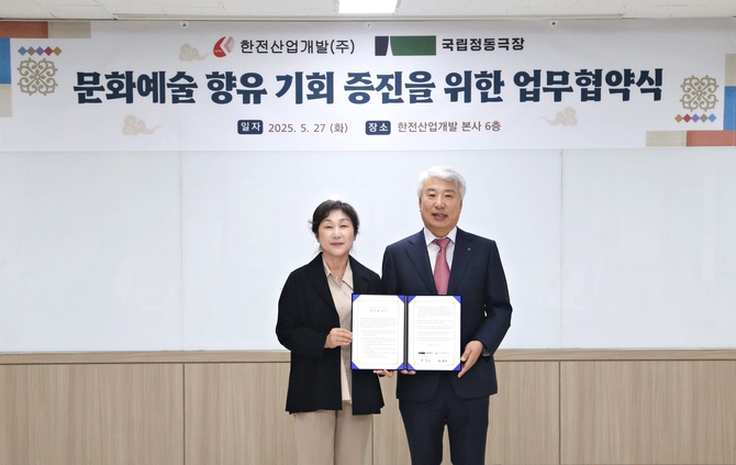 (조세금융신문=안종명 기자) 한전산업개발(사장 함흥규, 이하 한전산업)은 27일 본사 회의실에서 재단법인 국립정동극장(대표이사 정성숙)과 ‘문화예술 향유 기회 증진을 위한 업무협약(MOU)’을 체결했다고 밝혔다.