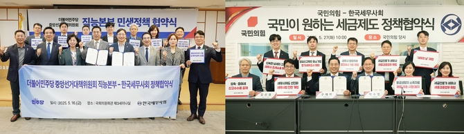 (조세금융신문=이지한 기자) 한국세무사회(회장 구재이)가 오는 6월 3일 제21대 대통령선거를 앞두고 그동안 중점 회무로 추진하고 있는 ‘국민이 원하는 세금제도 만들기’를 완성하고 세무사제도 선진화를 위한 세무사법 개정을 위해 더불어민주당과 국민의힘 대선캠프와 잇달아 ‘국민이 원하는 세금제도 만들기 및 세무사제도 개선 정책협약식’을 갖고 정책협약을 체결했다.