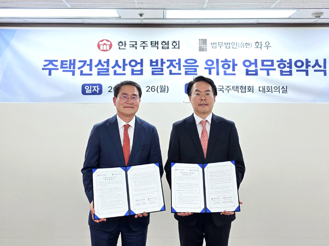 (조세금융신문=김영기 기자) 법무법인(유한) 화우(대표변호사 이명수, 이하 화우)는 지난 26일 서울 강남구 건설회관 대회의실에서 한국주택협회(회장 윤영준)와 주택∙건설산업 관련 법률 자문 및 지원과 상호 정보 교류를 위한 업무협약을 체결했다.