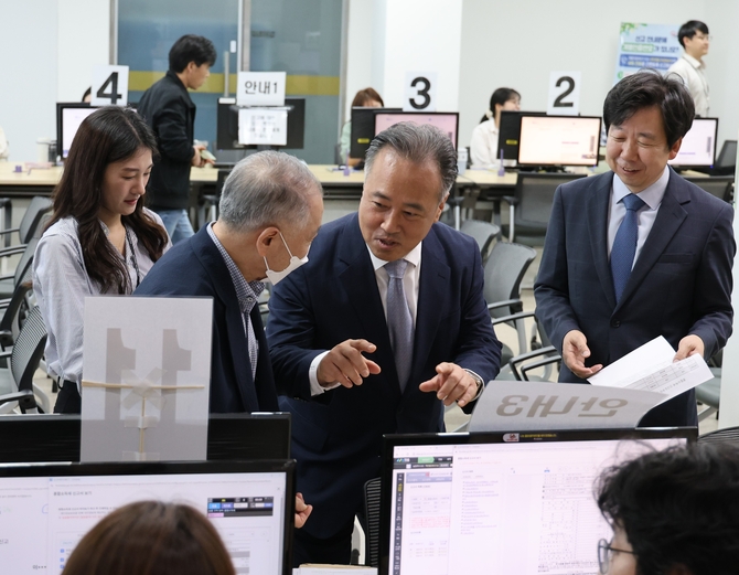 박재형 청장은 신고창구 현장에서 세무서를 내방한 납세자들이 신고에 어려움은 없는지 확인하는 한편, 어려운 근무 여건에서도 신고 안내 지원에 최선을 다하는 직원들을 격려했다.