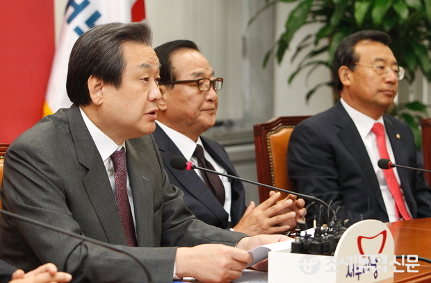 김 대표는 모두발언에서 "역사교과서 집필은 정부에게 맡기고 정치권은 이제 민생과 경제에 매진 할 때"라며 2일 야권의 국정교과서 반대 투쟁에 대해 "미래를 위해 나아가야 할 시기에 사회적 분열을 더 부추겨 정치권이 일을 못하도록 손발을 묶는 민생 방해공작"이라고 비난했다.