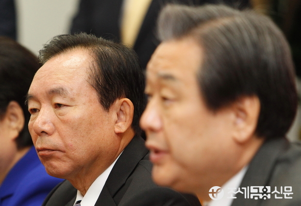 (조세금융신문=전한성 기자) 새누리당 최고위원회의가 2일 오전 서울 여의도 국회 대표최고위원실에서 열린 가운데 이인제 최고위원이 김무성 대표의 모두발언을 듣고 있다.