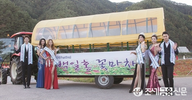 10월 4일 낮 일요일 평창읍 백일홍 꽃밭을 찾은 2011년부터 2015년 미스월드 한국 대표와 2014년, 2015년 미스터월드 한국 대표는 평창군민들과 관광객들의 아름다운 추억을 담을 수 있는 포토존 이벤트를 펼쳤다.