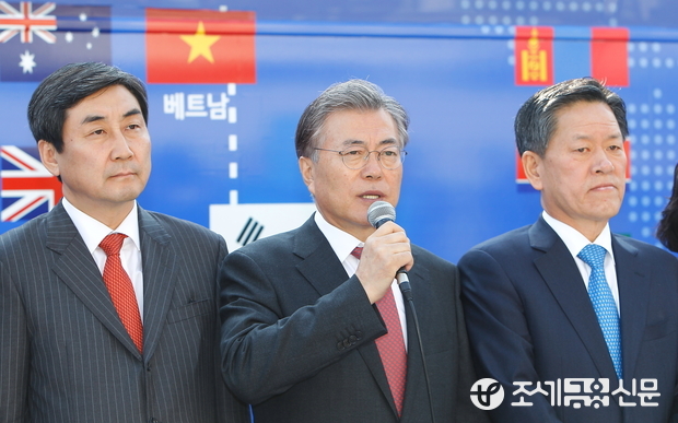 (조세금융신문=전한성 기자) 새정치민주연합이 2일 오전 서울 여의도 국회 본청 앞에서 '역사교과서 국정화 반대 국민의견 성명서 발표'를 한 가운데 문재인 대표가 발언을 하고 있다.