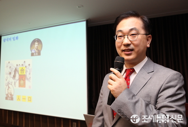 (조세금융신문=전한성 기자) '한국세무법협회(송동복 회장 직무대행) 제12회 조찬포럼'이 3일 오전 서울 강남구 역삼동 르네상스호텔에서 열린 가운데 전근용 서울디지털대학교 교양학부 교수가 '역사와 고전에서 배우는 지혜'라는 주제로 강의를 하고 있다.