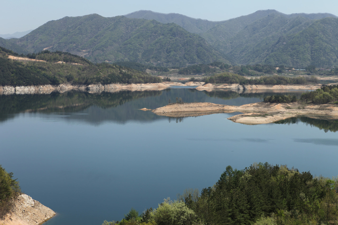 용담호는 국내 다섯 번째로 큰 인공호수로, 섬진강과 금강의 발원지인 진안고원의 물줄기를 가두어 만든 댐이다. 이로 인해 상전‧정천‧안천‧용담이 수몰되며 많은 이들이 고향을 잃었지만, 산세와 호수의 조화는 여전히 아름답다. 유람선 하나 없이 고요한 풍경은 오히려 더 한적한 매력을 주고, 30번 국도와 795번 지방도를 따라 벚꽃 흩날리는 봄과 푸른 숲이 우거진 여름이면 호반 드라이브 코스로도 손색없다.