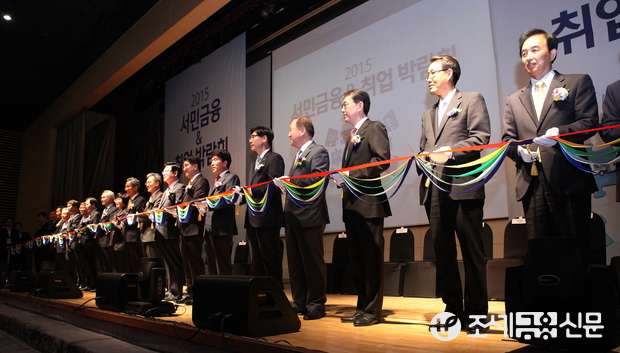 (조세금융신문=전한성 기자) 금융감독원이 은행·서민금융 유관기관, 지자체와 공동으로 서민 행복을 위한 '2015 서민금융&취업 박람회'를 3일 오전 서울 신도림 테크노마트에서 열린 가운데 내빈들이 기념 테잎컷팅식을 하고 있다.