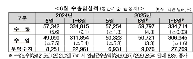 이는 지난 5월의 감소세에서 한 달 만에 플러스 전환에 성공한 것으로, 한국 경제의 견고한 회복세를 시사했다. 같은 기간 수입은 507억 2천만 달러로 3.3% 증가했으며, 수출에서 수입을 뺀 무역수지는 90억 8천만달러 흑자를 달성하며 2018년 9월 이후 최대 규모를 기록했다.