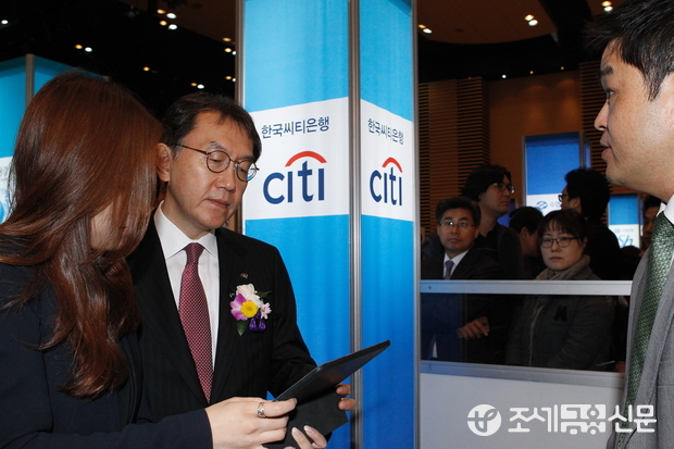 (조세금융신문=전한성 기자) 금융감독원이 은행·서민금융 유관기관, 지자체와 공동으로 서민 행복을 위한 '2015 서민금융&취업 박람회'를 3일 오전 서울 신도림 테크노마트에서 열린 가운데 박진회(가운데) 한국씨티은행장이 금융상품을 설명듣고 있다.