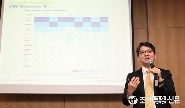 (조세금융신문=전한성 기자) 딜로이트 안진이 주최한 '글로벌 인사관리 및 해외주재원 세무관리 세미나'가3일 오후 서울 여의도 IFC몰에서 열린 가운데 이상준 상무가 '글로벌 인사관리 동향 및 인사관리 전략'이란 주제로 강의를 하고 있다.