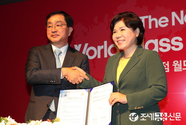 (조세금융신문=전한성 기자) 롯데면세점 월드타워점 프레스투어가 4일 오전 서울 송파구 롯데시네마 월드타워점에서 열린 가운데 이홍균(왼쪽) 대표이사와 조은희 서초구청장이 MOU를 체결하고 기념촬영을 하고 있다.