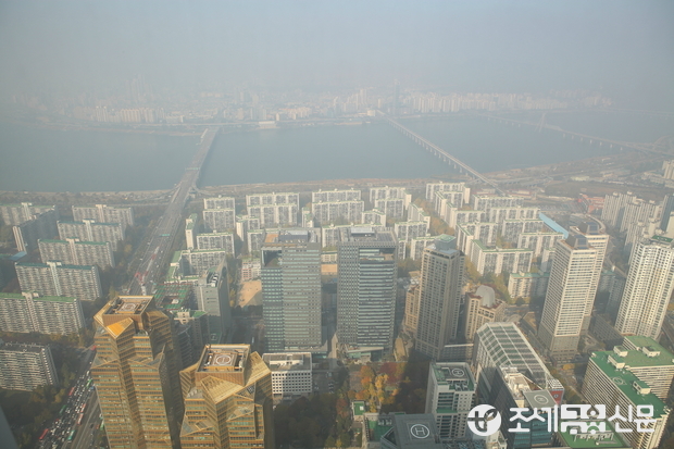 (조세금융신문=전한성 기자) 롯데면세점 월드타워점 프레스투어가 4일 오전 서울 송파구 롯데시네마 월드타워점에서 열린 가운데 롯데월드타워 70층에서 내려다 본 서울의 풍경이 아기자기하게 보인다.