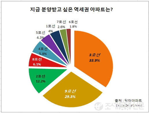부동산 포털 닥터아파트(www.DrApt.com)가 2015년 11월 2일부터 8일까지 회원 375명을 대상으로 서울지하철 역세권 아파트 선호도에 대한 설문조사를 실시한 결과 서울지하철 1~9호선 중 지금 분양받고 싶은 역세권 아파트로는 3호선이 33.9%로 1위를 차지했다. 이어 9호선이 29.3%, 2호선이 12.2%로 3위를 차지했다.