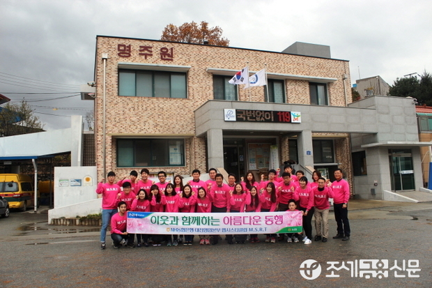 (조세금융신문=김사선 기자) NH농협은행 (은행장 김주하)은 지난 7일‘ 농협은행 친절 우수직원으로 선발된 맵시스타클럽 M.S.R.T. 회원들과 소비자보호부 CS팀 직원들과 함께 충남 공주에 소재한 사회복지시설 명주원에서 장애우들을 대상으로 ‘이웃과 함께하는 아름다운 동행’의 시간을 가졌다고 9일 밝혔다.