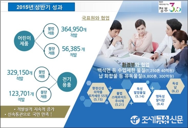 관세청은 지난해 9월부터 국가기술표준원과 함께 어린이제품과 전기용품을 대상으로 협업검사를 시행한 데 이어 올해 상반기에는 환경부의 화학물질, 하반기에는 식약처의 해외직구물품 등으로 참여기관과 대상품목을 확대했다.