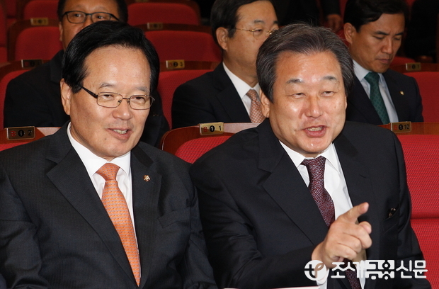 (조세금융신문=전한성 기자) 국회의원 정갑윤·원혜영·나경원·김관영 의원실이 주최한 '기부천사와 함께하는 나눔 토크 콘서트'가 10일 오전 서울 여의도 국회 의원회관에서 열린 가운데 새누리당 김무성(오른쪽) 대표가 정의화 국회의장과 대화 나누고 있다.