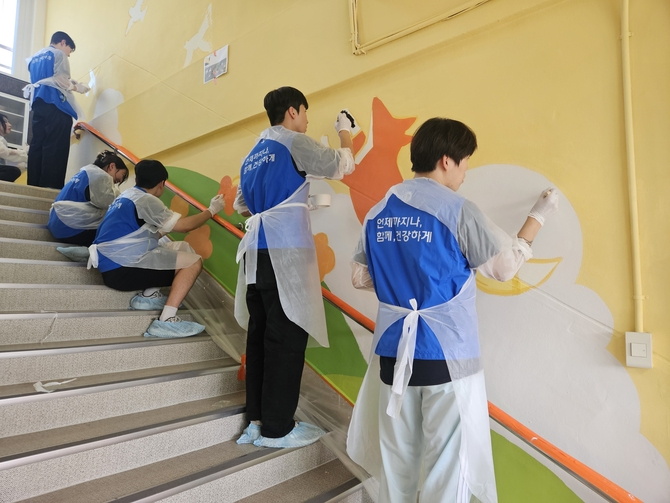 신입사원들은 구슬땀을 흘리며 공검초등학교 복도와 급식소 등 노후 벽면에 밝고 따뜻한 색감을 활용해 벽화를 조성했다. 벽화에는 학생들의 동심과 상상력을 자극할 수 있는 디자인을 적용했다.