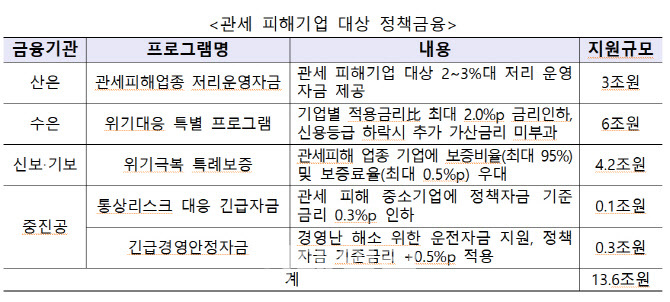 정부가 내놓은 지원 방안의 핵심은 '자금 수혈'이다. 관세 피해 기업을 대상으로 총 13.6조원 규모의 정책 자금을 투입한다.
