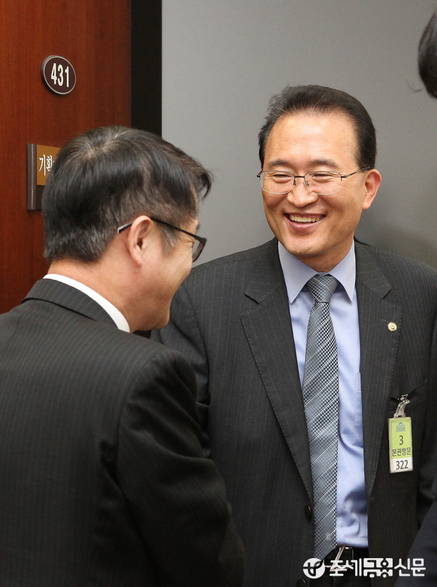 (조세금융신문=전한성 기자) 제337회국회(정기회) 제1차 조세소위원회가 10일 오후 서울 여의도 국회에서 열린 가운데 백운찬 한국세무사회장이 문창용 기획재정부 세제실장과 악수 나누고 있다.