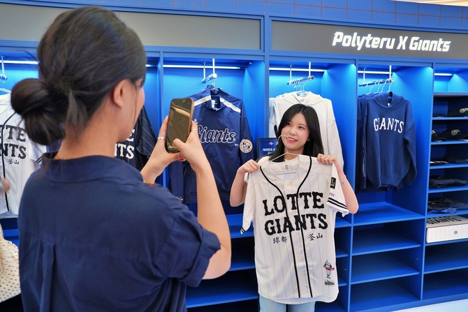 역대 최대 규모의 자이언츠 관련 팝업으로, 젊은 세대에게 큰 인기를 끌고 있는 국내 패션 브랜드 '폴리테루'와 협업한 다양한 컬래버레이션(협업) 컬렉션 상품을 선보인다.