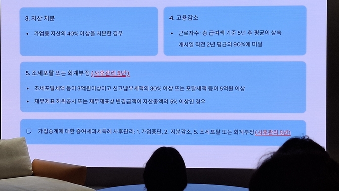 특히, 가업승계 신청 건수가 ‘적은 이유’에 대해 황 세무사는 ▲엄격한 신청요건 ▲사후관리 부담 ▲후계자 부재와 정보 전달 부족 ▲가업을 승계해 줄 오너의 실행력 부족 등으로 분석했다.
